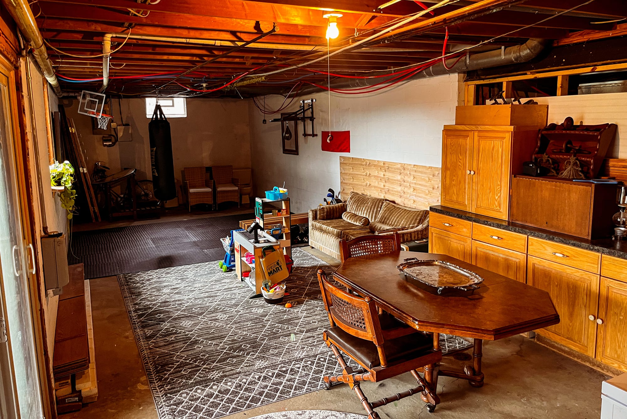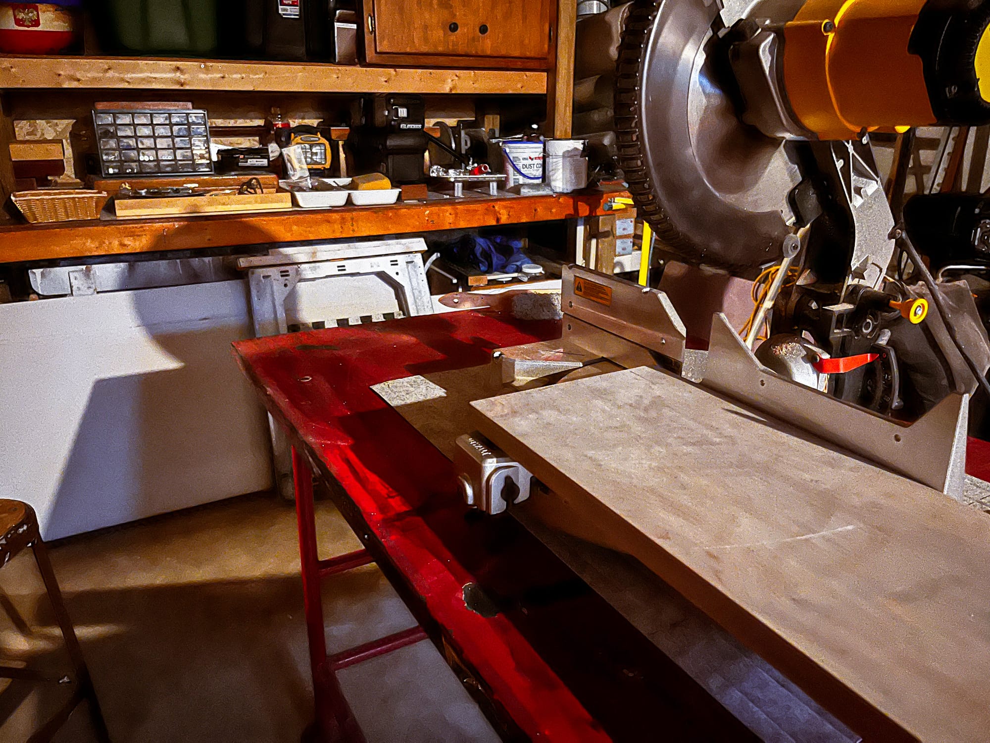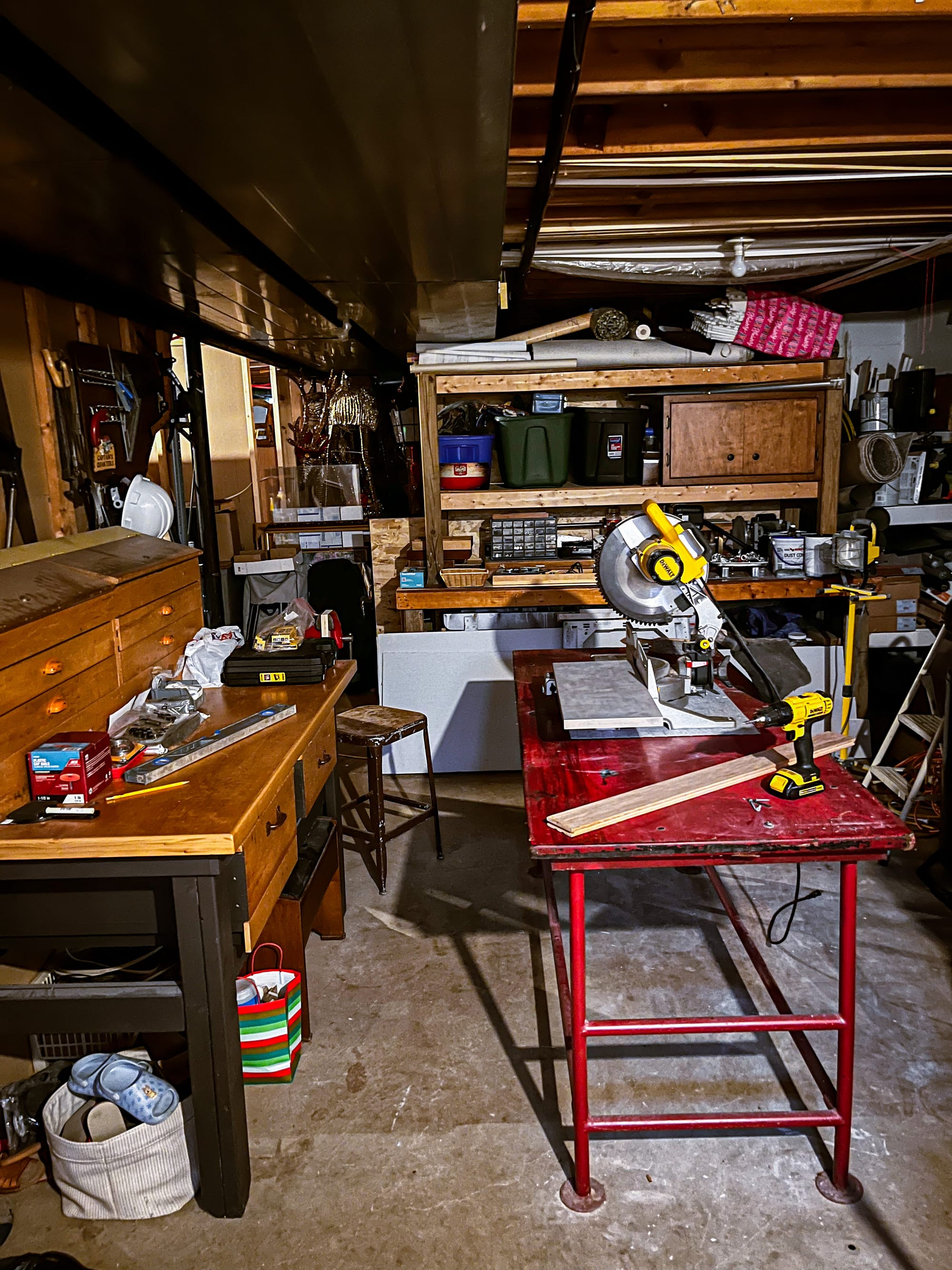 This is the most direct space in the basement. Tools are where they need to be, materials are within reach, and most of what happens here has a clear next step, even if the final outcome isn’t fully decided yet.