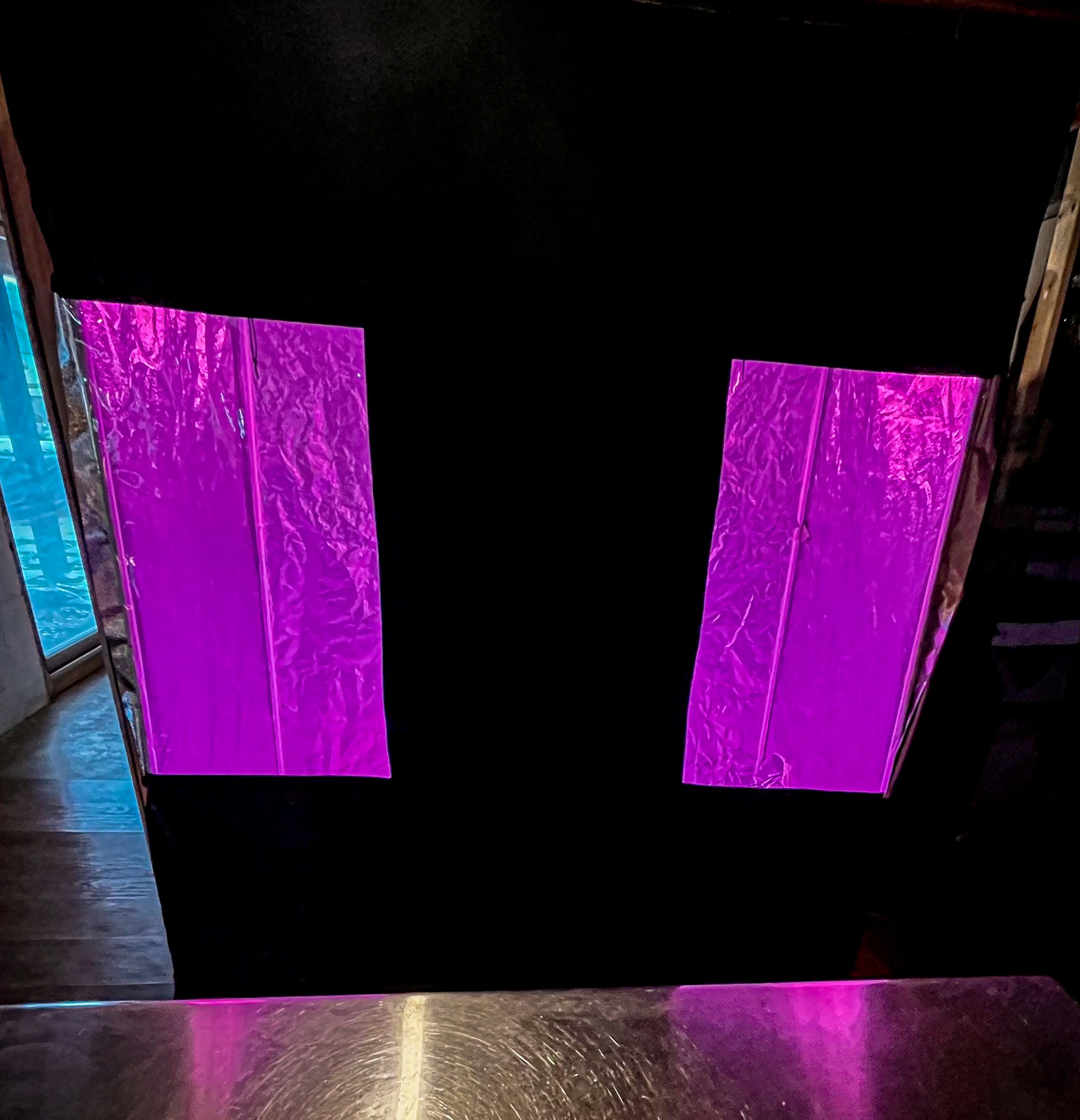 Right now, the structure is in place, but the conditions aren’t fully there yet. Until the plastic walls that will define the space are sealed in the way they need to be, the air still moves though the room like the rest of the basement. The stainless workbench is in but not yet carrying the kind of repetition it’s meant for.